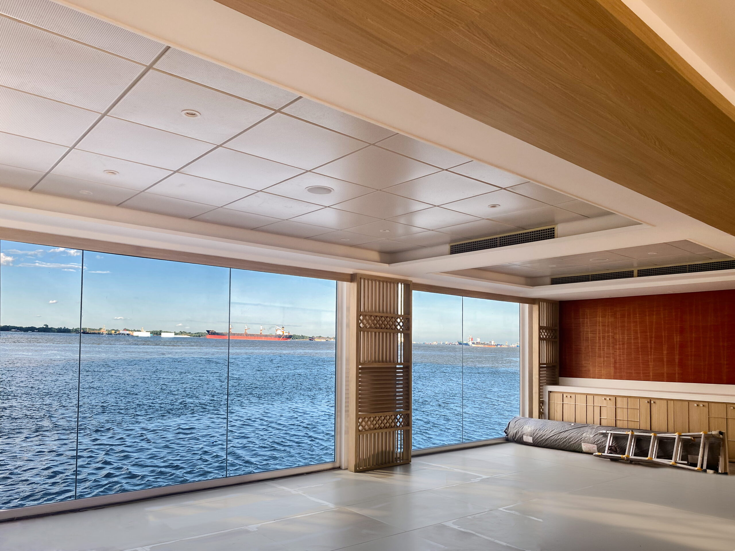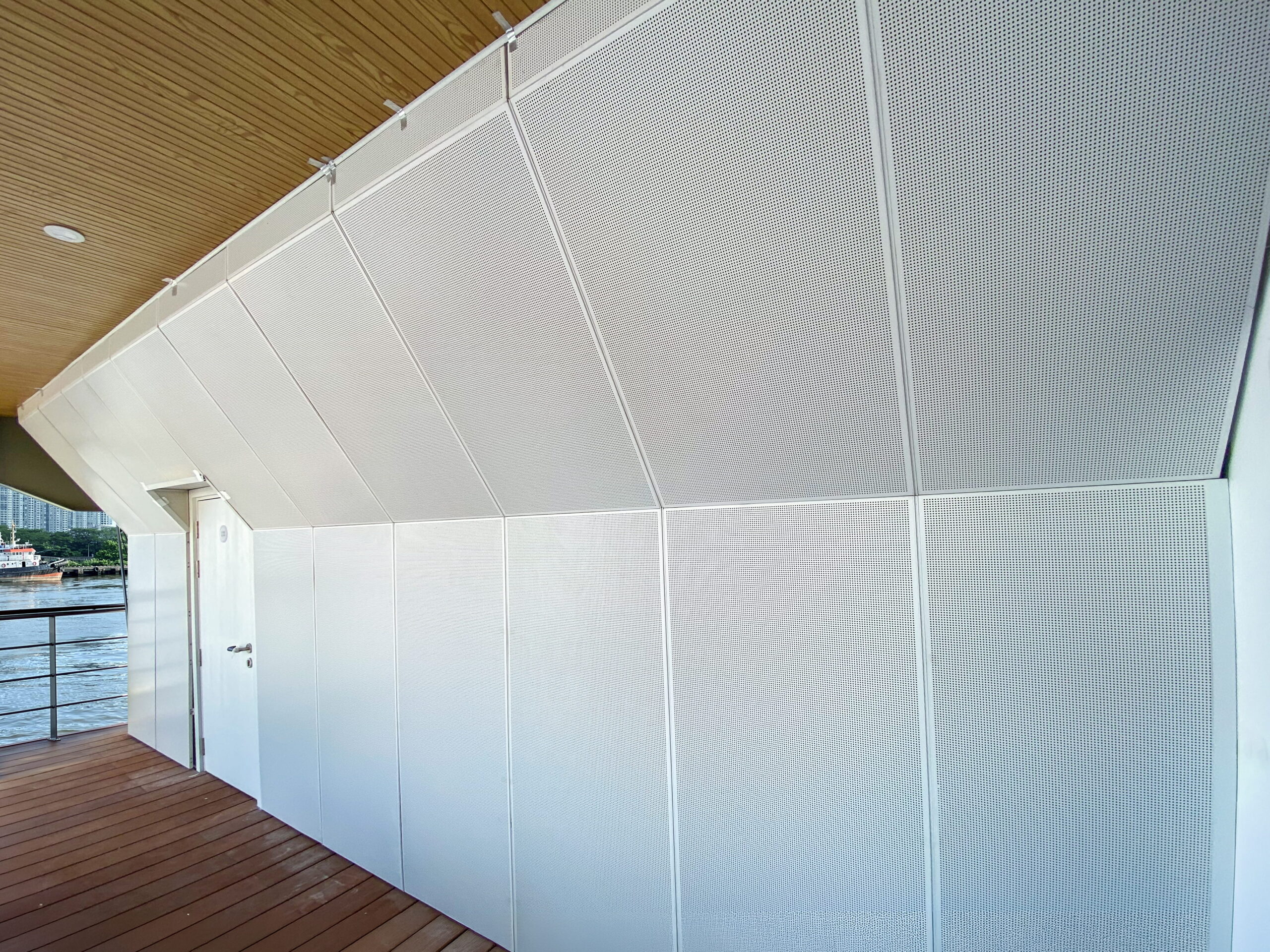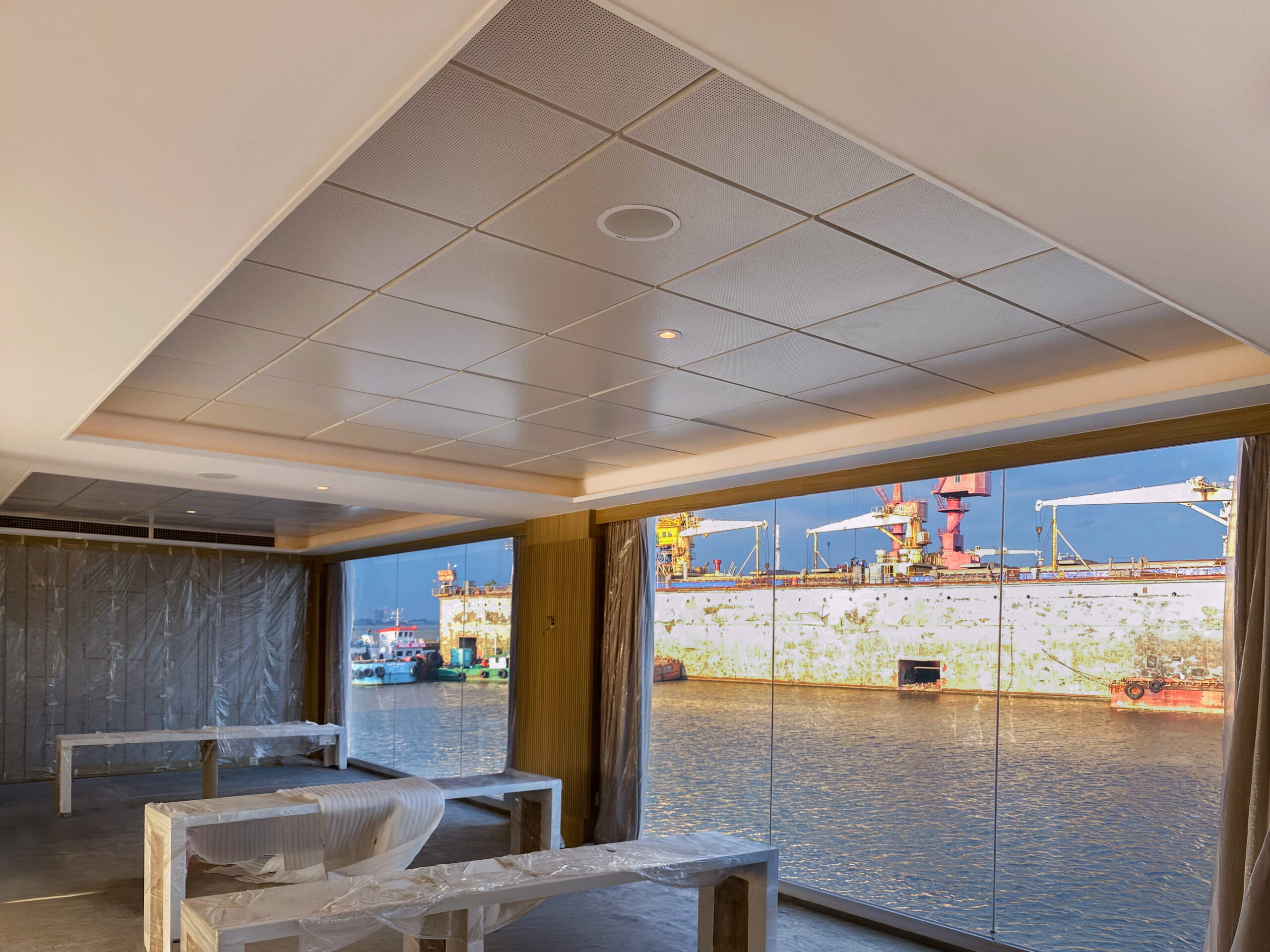 Hạng mục cách âm – tiêu âm bằng tấm nhôm đột lỗ iMicro được triển khai phù hợp với không gian cao cấp của du thuyền, nơi tiếng ồn động cơ và cộng hưởng kim loại cần được kiểm soát chặt chẽ.