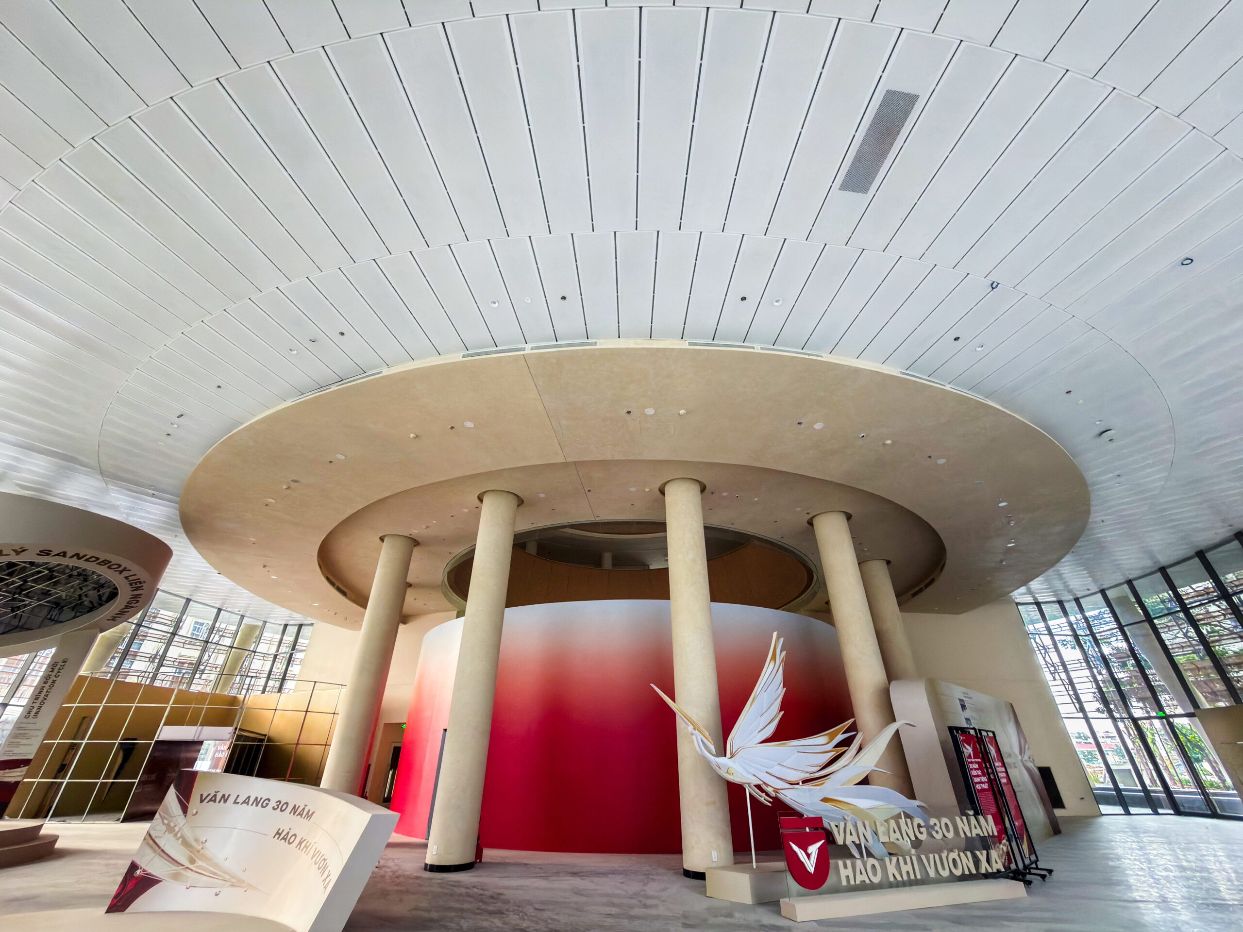 Hạng mục lắp đặt trần nhôm đục lỗ sơn trắng không chỉ hoàn thiện thẩm mỹ mà còn nâng tầm hình ảnh không gian đào tạo theo chuẩn đại học đô thị hiện đại cho dự án Trường VLU (TP.HCM).